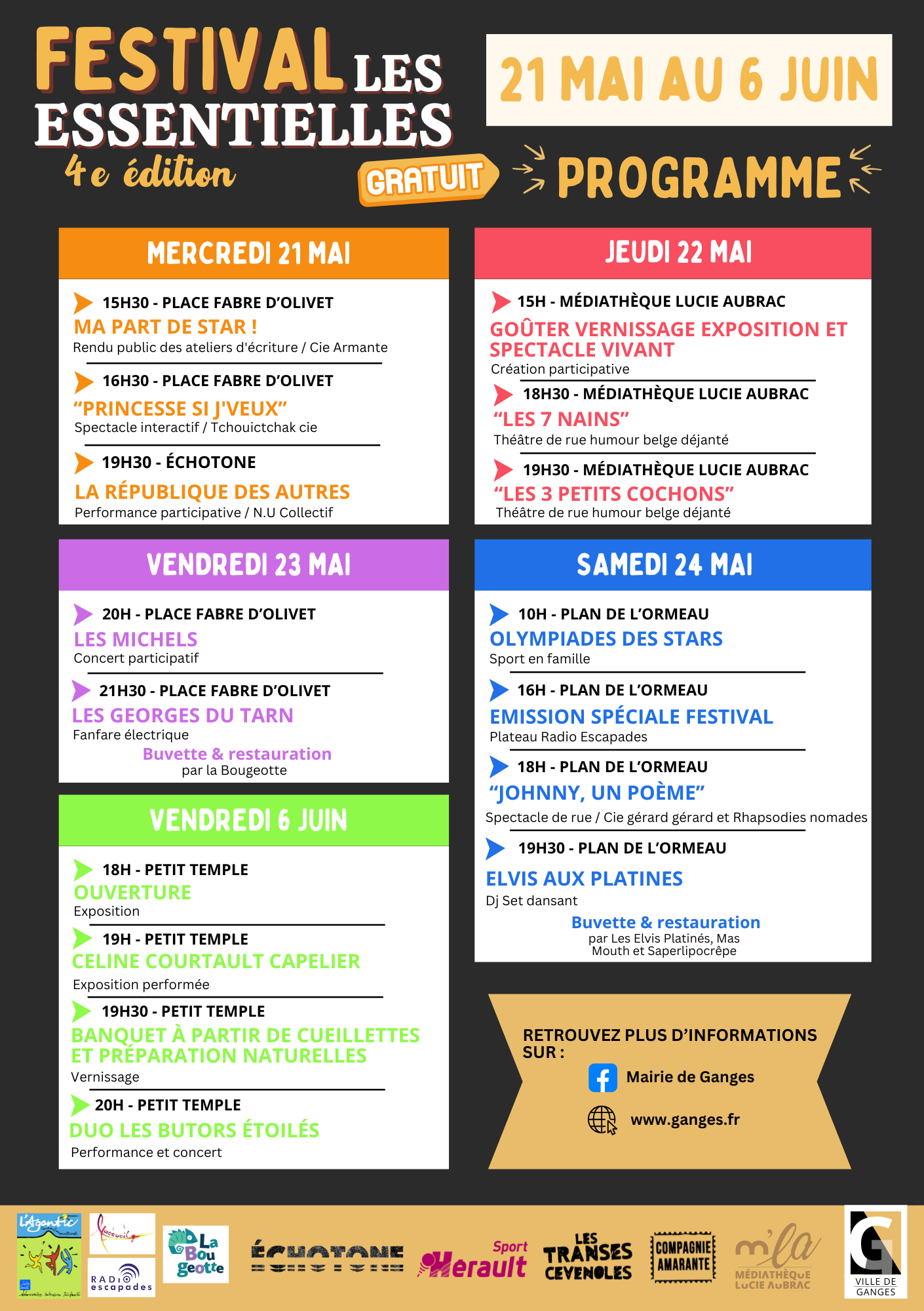 Le festival Arts et Culture Les Essentielles s’installe une nouvelle fois à Ganges du 21 mai au 6 juin 2025.